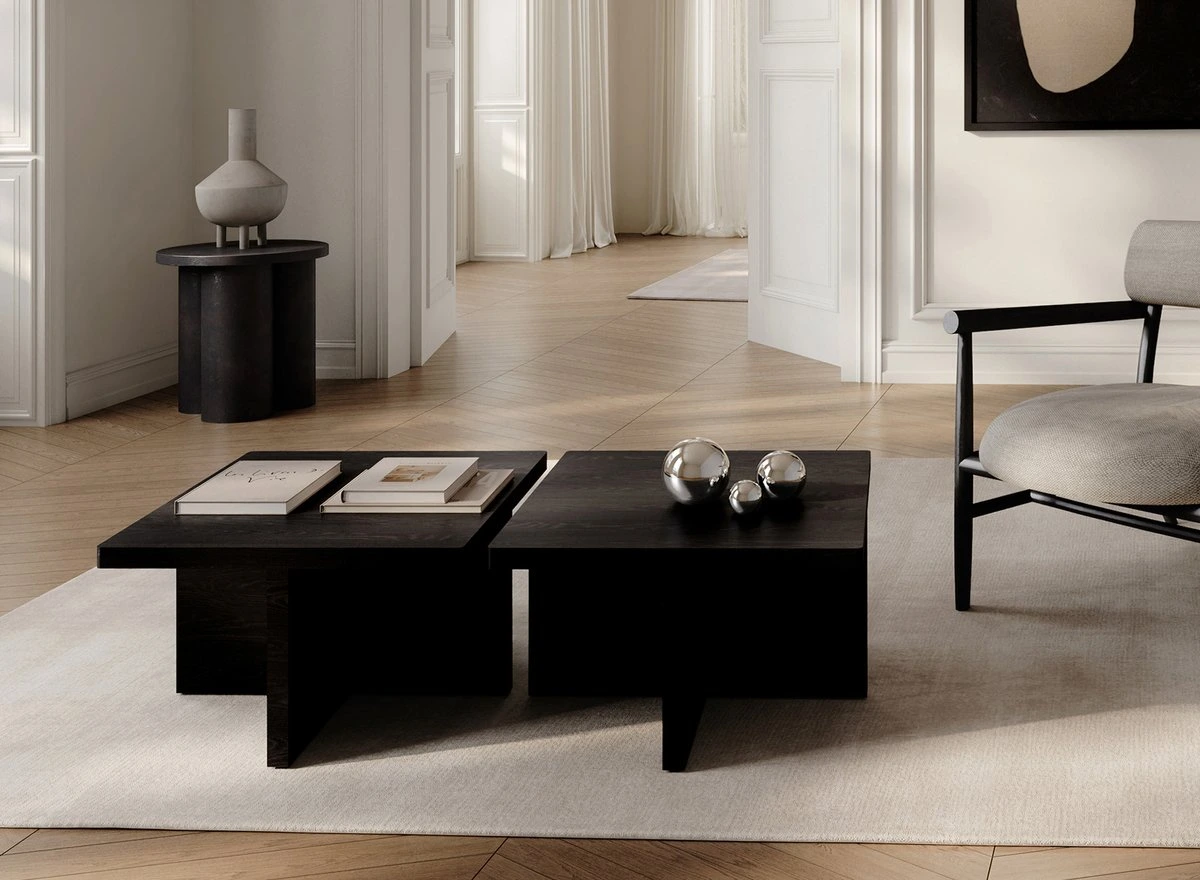 Inspired by the Brutalist architecture movement of the mid-20th century, the Brutus collection is reimagined in solid oak with a natural finish in the inviting Coffee Black color, highlighting the raw beauty and timeless appeal of the material itself.