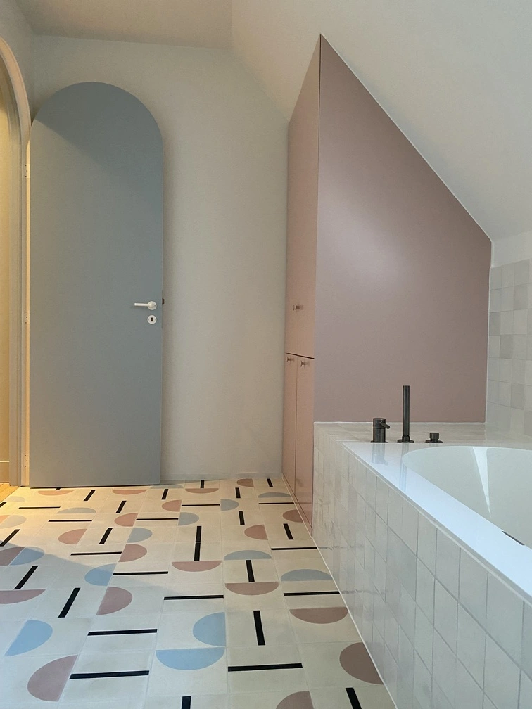 We are pleased to briefly showcase two projects created with concrete tiles from the Popham Design collection. The collection’s unusual shapes and vibrant colors lend themselves brilliantly to breaking some rules and creating surprising harmonies.