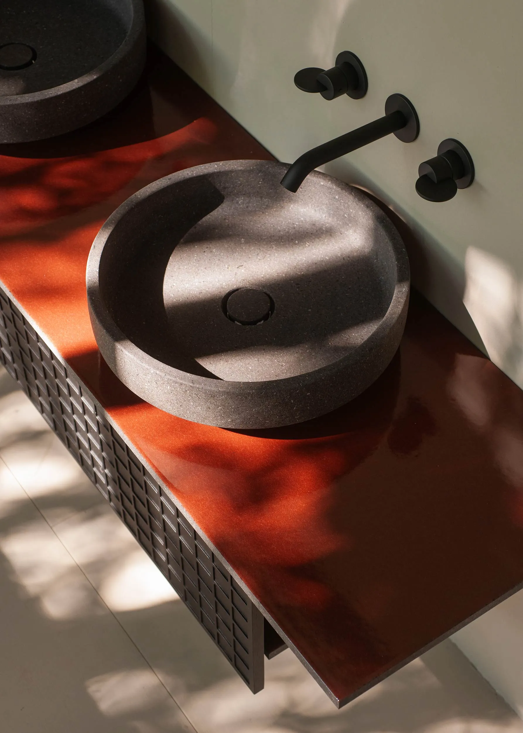 Bloque is the latest creation by Patricia Urquiola for Agape, reimagining the traditional bathroom unit. It transforms conventional forms into a system of planes and surfaces, defining clean, Cartesian spaces where natural materials—stone and wood—interact to create refined, versatile compositions.
